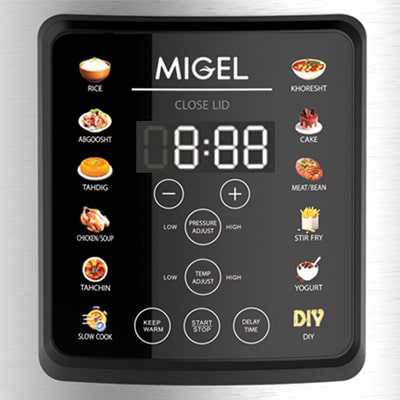 زودپز میگل مدل GPC 600 دستگاهی چند منظوره و با عملکردهایی همچون پلوپز، زودپز، آرام پز، تفت دهی و ماست ساز عرضه شده . میگل برای این محصول، 12 منوی پخت از پیش تعریف شده را ارائه کرده که می توان مطابق با نوع پخت و هر گونه ذائقهای از برنامه ها استفاده نمود و غذاهایی همانند برنج، سوپ، گوشت، ماهی، مرغ و … را طبخ کرد.
