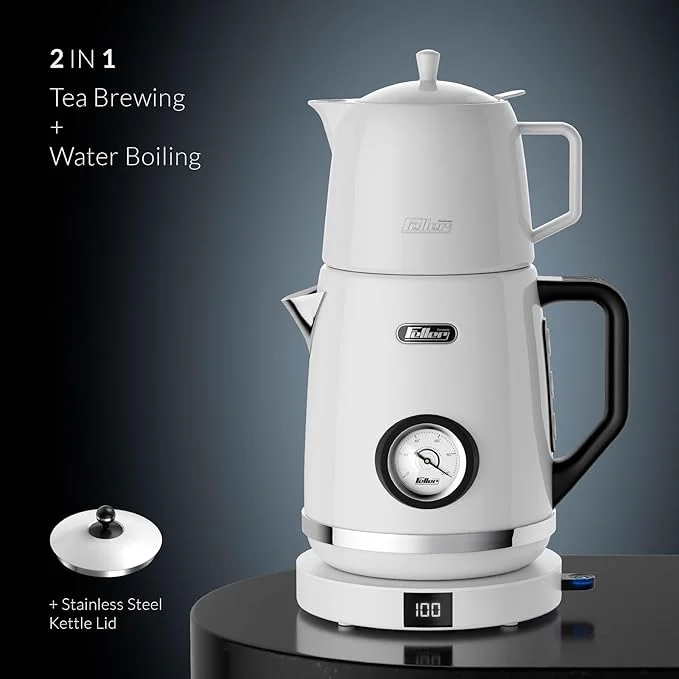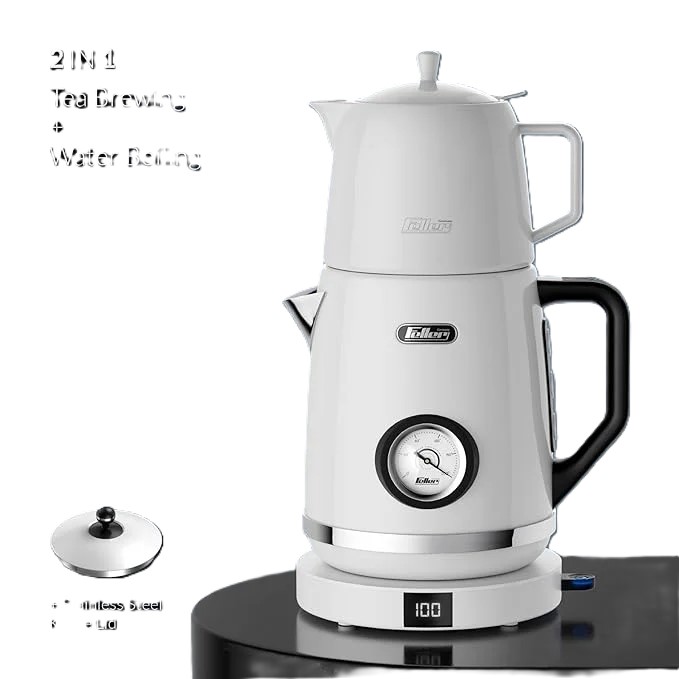برای قوری و کتری چای ساز فلر مدل TS290 دو درب جداگانه در نظر گرفته شده که امکان استفاده از دستگاه به عنوان کتری یا چای ساز را به طور همزمان می دهد. با توجه به اینکه سیم کتری به پایه وصل است، جا به جایی کتری به سهولت و آزادانه انجام می شود. نوع طراحی پایه نیز به گونه ای است که کتری روی آن می تواند به تمام جهت و 360 درجه بچرخد.